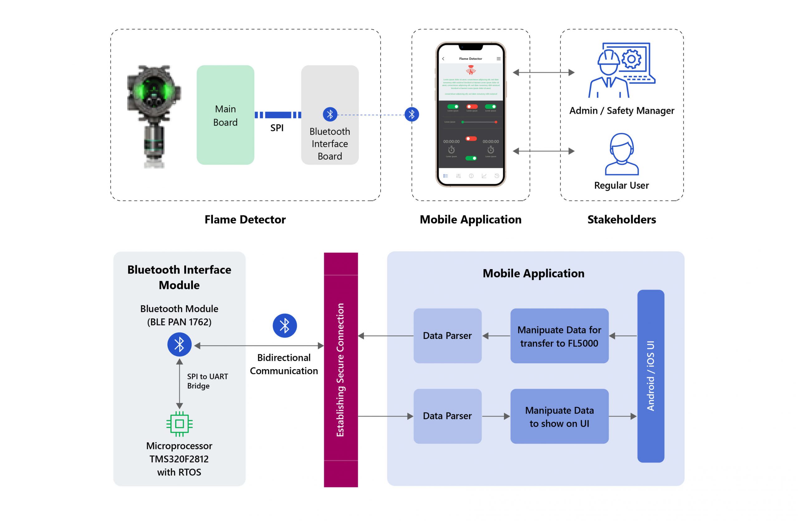 Flame detectors are one of the many safety products manufactured by the customer. However, the risk involved in close-quarter configuration of these devices was too high, as were the maintenance costs and manpower involved. As a part of their IoT and digitisation initiative, the customer needed to integrate a Bluetooth interface on their flame detectors and design an app that allowed the customer to monitor and control all these devices. They partnered with Softdel to develop a solution matching their exact needs.