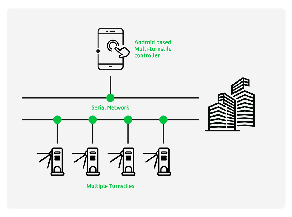 Turnstiles are an important safety component in smart buildings – they detect and deter unauthorised access. They are also an efficient way to manage crowd control in buildings. The customer’s mandate was to build an innovative solution that would allow them to monitor and control several turnstiles from a single master controller. A touchscreen-based interface was the answer to their needs.